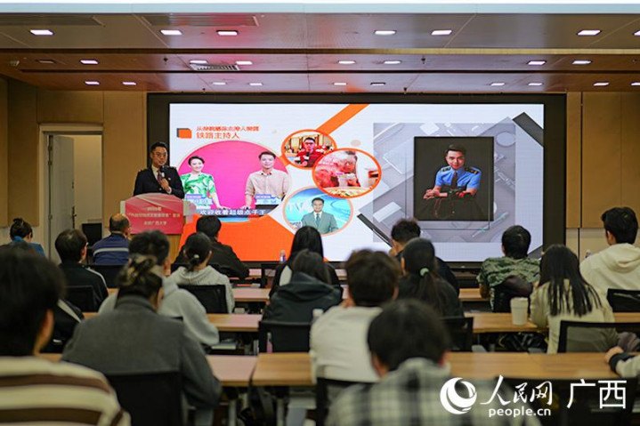 12月12日,2025“八桂好网民正能量故事”宣讲活动在广西大学大学生活动中心举行,南宁师范大学、广西金融职业技术学院、广西现代职业技术学院等高校组织观看线上直播。